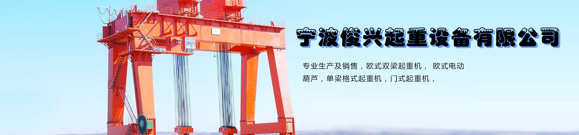寧波俊興起重設(shè)備有限公司,公司負責人:徐丙俊先生,24小時銷售熱線:13777111760,本公司是河南礦山起重設(shè)備有限公司長沙總代理,河南中州智能起重設(shè)備有限公司長沙總代理,公司主營:單梁起重機、雙梁起重機、電動葫蘆、門式起重機、工程起重機、小型起重機械、單梁起重機配件、雙梁起重機配件、門式起重機配件、工程起重機配件等等。本公司是中國起重行業(yè)協(xié)會成員單位和中國重工協(xié)會理事單位。具有電動葫蘆、單、雙梁起重機生產(chǎn)許可證和制造、安裝、維修安全認可證及320T橋、門式起重機和280T鑄造吊制造安全認可證。嚴格的...【更多】