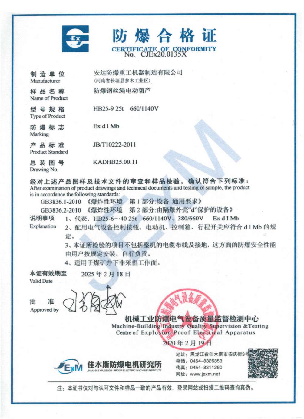 » 防爆鋼絲繩電動葫蘆 防爆合格證