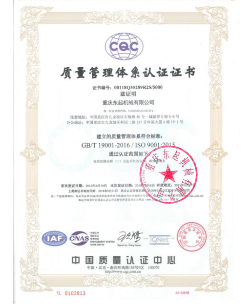 質(zhì)量管理體系認證書