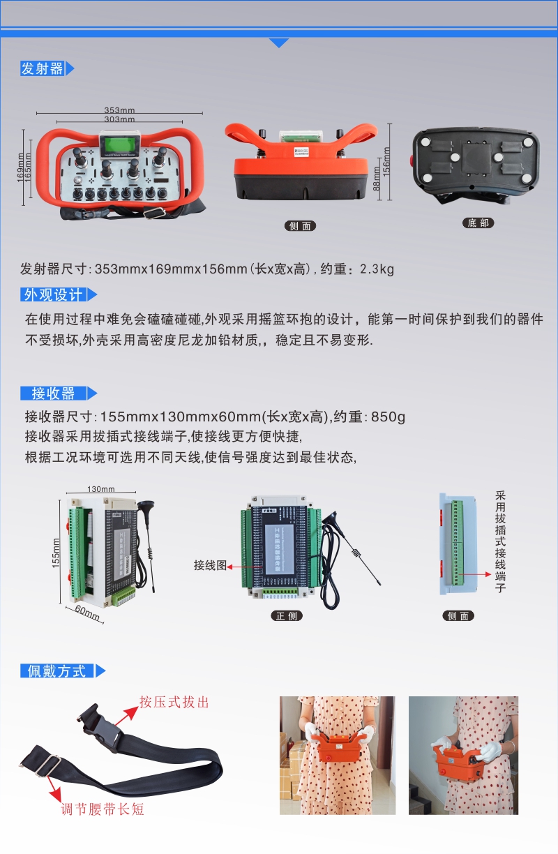 公司產(chǎn)品廣泛應(yīng)用于焊接切割行業(yè)、工程機(jī)械行業(yè)、礦山機(jī)械行業(yè)、木工機(jī)械行業(yè)、農(nóng)業(yè)機(jī)械行業(yè)、機(jī)場設(shè)備、海洋石化工程等領(lǐng)域;產(chǎn)品工作在433M Hz國際免費(fèi)頻段,并采用智能跳頻技術(shù),徹底解決焊接、切割,以及各種工況環(huán)境下的干擾問題。