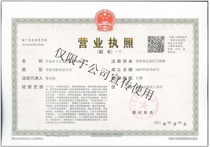 | 發(fā)證機(jī)構(gòu): | 長垣市市場監(jiān)督管理局 | 發(fā)證時間 : | 2022-08-04 |
