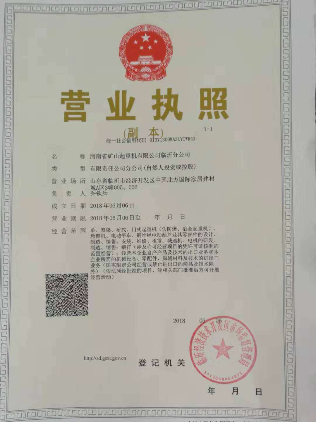 | 發(fā)證機(jī)構(gòu): | 臨沂經(jīng)濟(jì)開發(fā)區(qū)市場監(jiān)督管理總局 | 發(fā)證時(shí)間 : | 2018-06-06 |