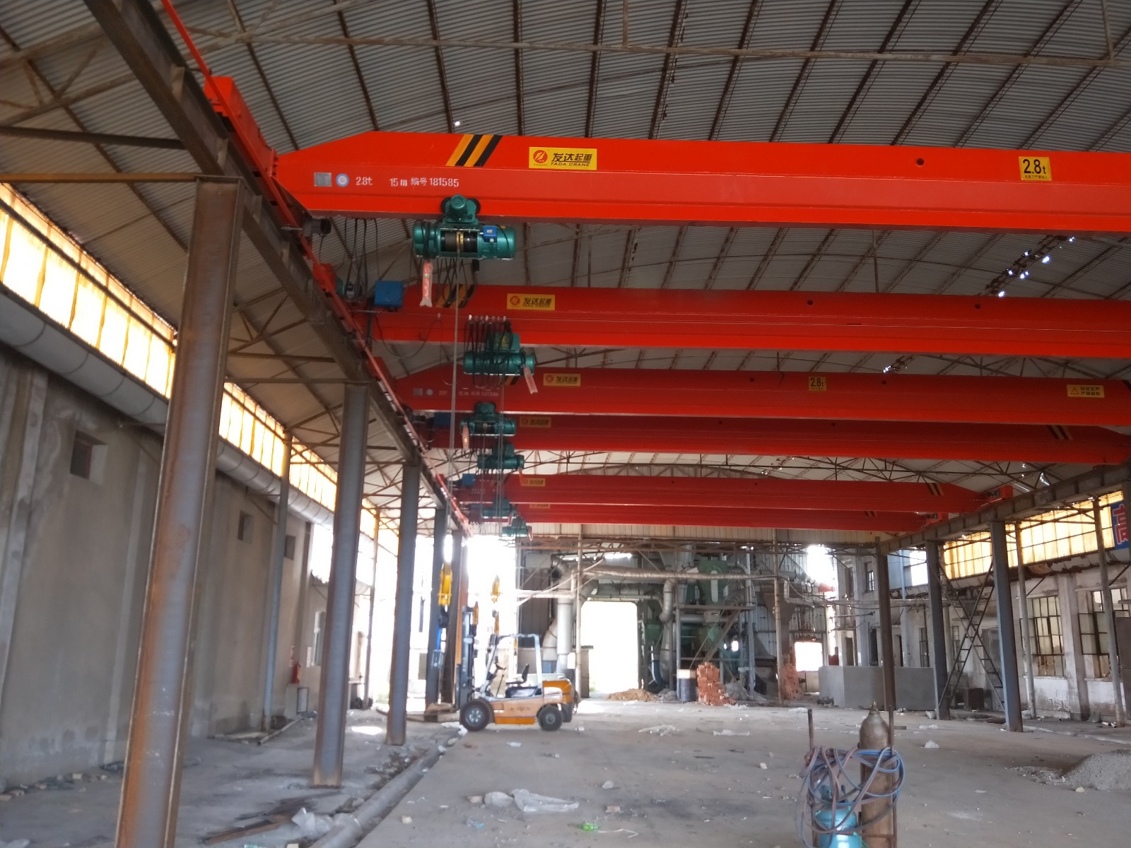 本公司主要生產(chǎn)產(chǎn)品有:(1)起重機(jī)類: 天車/天吊/行吊/行車、單梁起重機(jī)、雙梁起重機(jī)、電動(dòng)葫蘆雙梁起重機(jī)、 門式起重機(jī) 、半門式起重機(jī)、懸臂起重機(jī)、壁栓式懸臂起重機(jī)、旋臂起重機(jī)、LX懸掛起重機(jī)、LH葫蘆雙梁起重機(jī)、花架門式起重機(jī)、雙梁抓斗起重機(jī)、QD吊鉤橋式起重機(jī)、QD冶金鑄造起重機(jī)、QE雙小車吊鉤橋式起重機(jī)、MH單主梁葫蘆門式起重機(jī)、MG雙橋吊鉤門式起重機(jī)、L單主梁門式起重機(jī)、升降平臺(tái)、電磁吸盤、電動(dòng)平車、導(dǎo)軌貨梯類非標(biāo)起重機(jī)的制造、改造、安裝、維修、保養(yǎng)等。 二、配套件類:各類國產(chǎn)進(jìn)口電動(dòng)(手動(dòng))葫蘆、防爆電動(dòng)葫蘆、冶金電動(dòng)葫蘆.雙制動(dòng)電動(dòng)葫蘆、雙速電動(dòng)葫蘆、環(huán)鏈電動(dòng)葫蘆、微型電動(dòng)葫蘆、手拉葫蘆、單軌小車、電磁(永磁)吸盤、電纜卷筒、電動(dòng)小車、電控柜、卷揚(yáng)機(jī)、空壓機(jī)、電動(dòng)機(jī)、減速機(jī)、液壓制動(dòng)器、聯(lián)軸器、變頻器、控制器、遙控器、保護(hù)器、電阻器、緩沖器、安全滑線、電線電纜、抓斗抓具、吊具索具夾具、吊帶、吊鉤、起重鏈條.車輪組、公司有專業(yè)維修人員為客戶;維修,安裝,調(diào)試,檢修保養(yǎng)等業(yè)務(wù)。