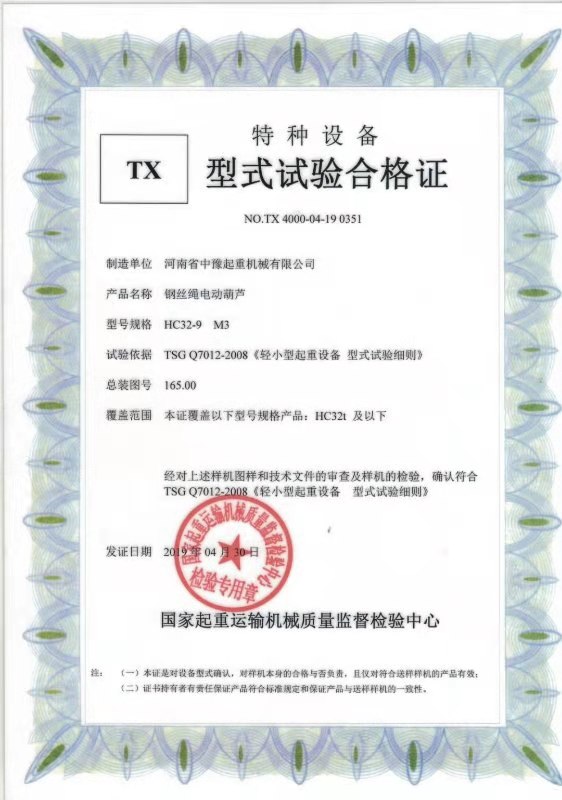 » 特種設(shè)備型式試驗合格證