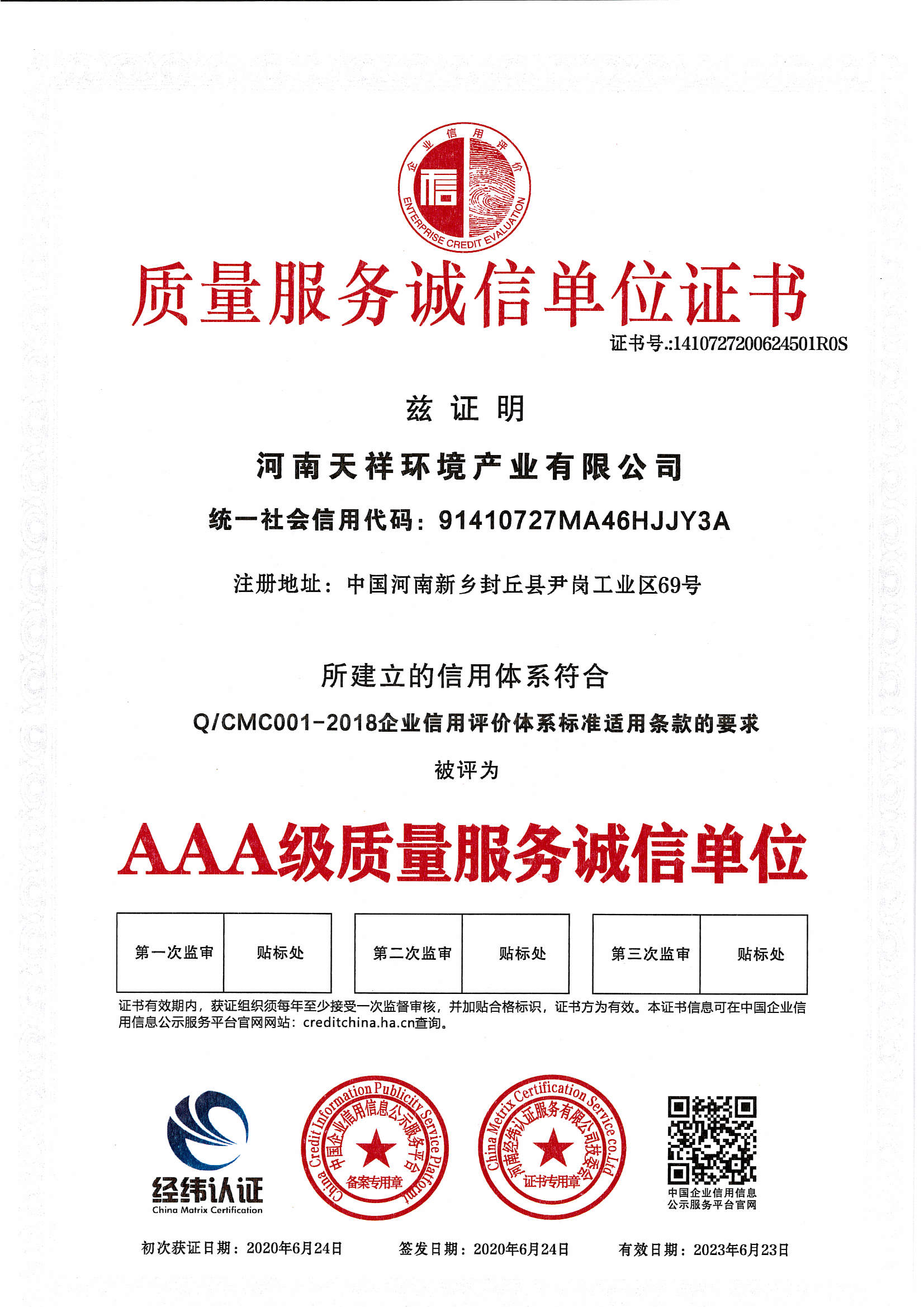 » 質(zhì)量服務(wù)誠信單位證書