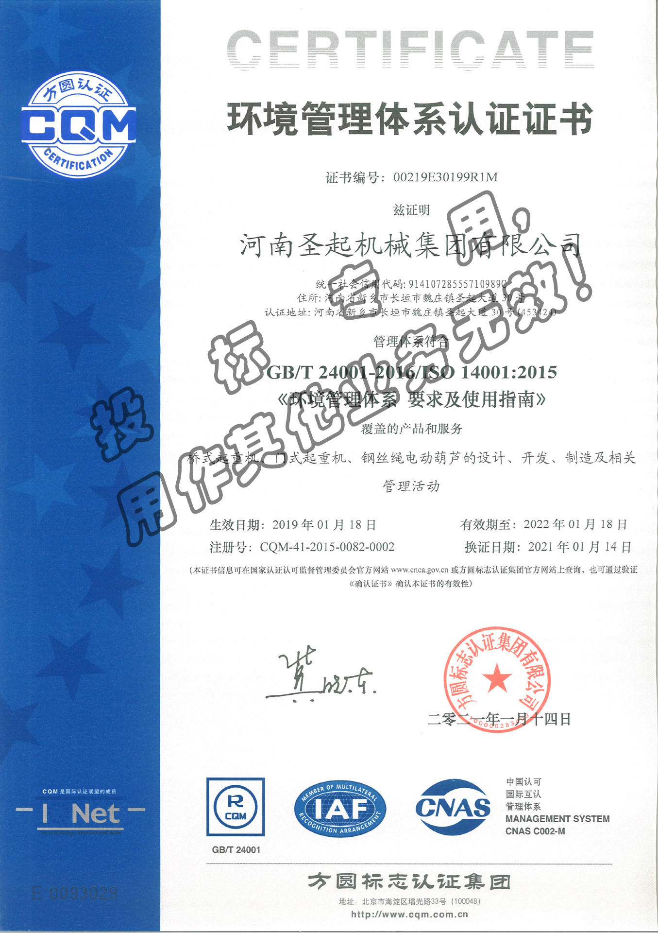 榮譽(yù)資質(zhì) 環(huán)境管理體系認(rèn)證證書