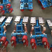 集電器是滑觸線系統(tǒng)中集電側(cè)拾取電能的主要裝置,它通過集電刷與導(dǎo)軌的滑動(dòng)接觸,將電能直接傳導(dǎo)至用電器,從而實(shí)現(xiàn)系統(tǒng)的移動(dòng)供電。集電器由機(jī)械結(jié)構(gòu)的張力裝置和直接與導(dǎo)軌滑動(dòng)接觸的集電刷兩部分組成。