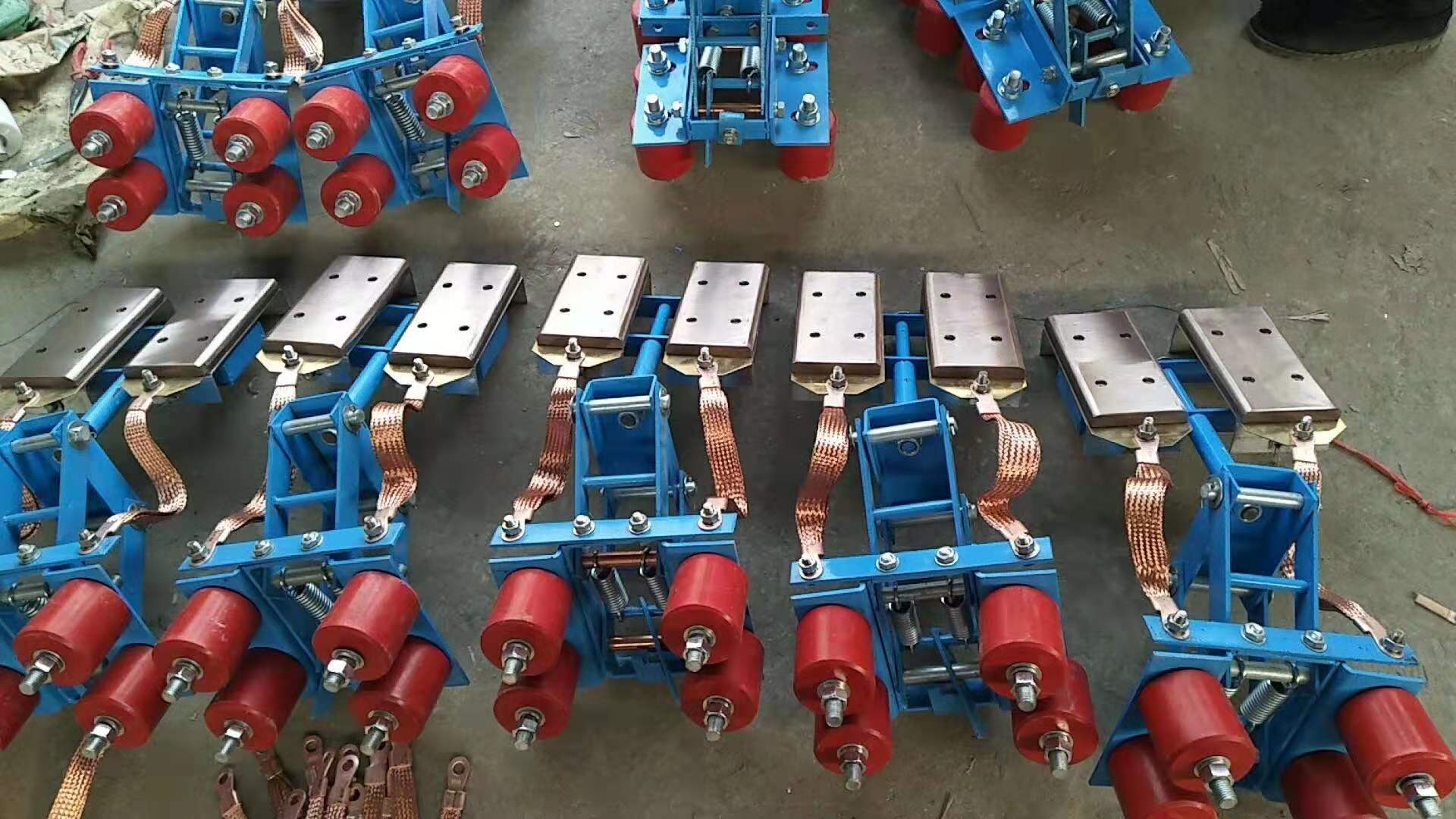 集電器是滑觸線系統(tǒng)中集電側拾取電能的主要裝置,它通過集電刷與導軌的滑動接觸,將電能直接傳導至用電器,從而實現(xiàn)系統(tǒng)的移動供電。集電器由機械結構的張力裝置和直接與導軌滑動接觸的集電刷兩部分組成。