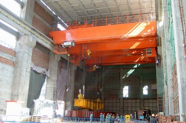 橋式起重機(jī)是橫架于車(chē)間、倉(cāng)庫(kù)和料場(chǎng)上空進(jìn)行物料吊運(yùn)的起重設(shè)備。由于它的兩端坐落在高大的水泥柱或者金屬支架上,形狀似橋。橋式起重機(jī)的橋架沿鋪設(shè)在兩側(cè)高架上的軌道縱向運(yùn)行,可以充分利用橋架下面的空間吊運(yùn)物料,不受地面設(shè)備的阻礙。它是使用范圍**廣、數(shù)量**多的一種起重機(jī)械