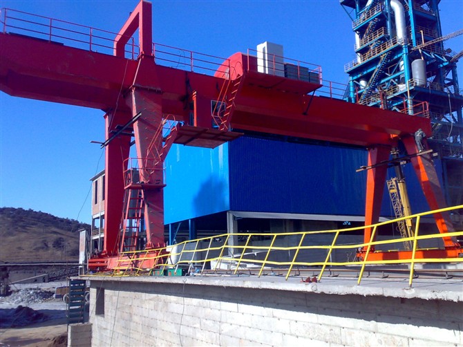 它的金屬結(jié)構(gòu)像門形框架,承載主梁下安裝兩條支腳,可以直接在地面的軌道上行走,主梁兩端可以具有外伸懸臂梁。