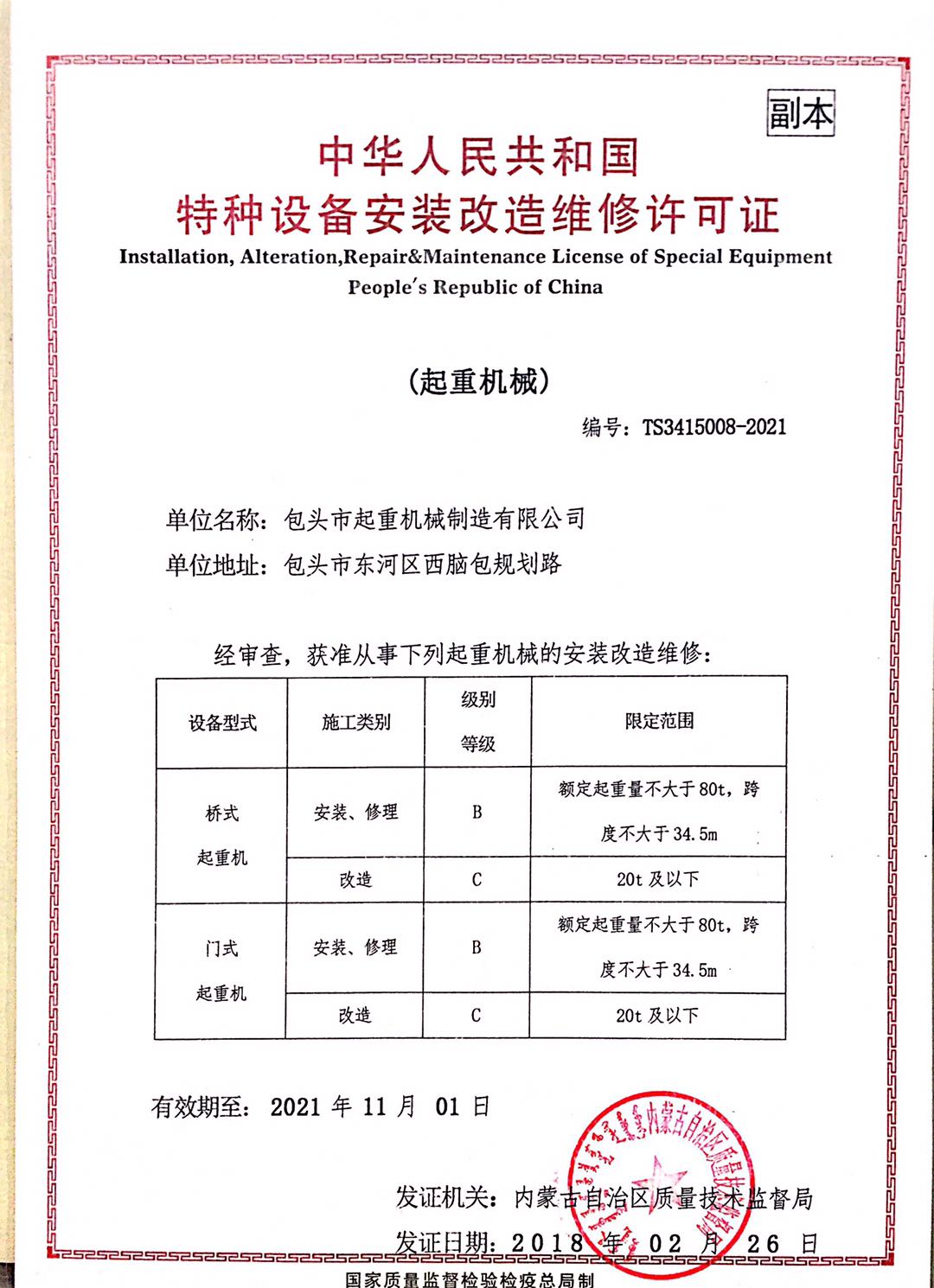 » 特種設備制造許可證