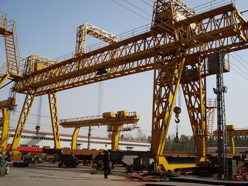 橋式起重機是橫架于車間、倉庫和料場上空進行物料吊運的起重設備。由于它的兩端坐落在高大的水泥柱或者金屬支架上,形狀似橋。橋式起重機的橋架沿鋪設在兩側高架上的軌道縱向運行,可以充分利用橋架下面的空間吊運物料,不受地面設備的阻礙。它是使用范圍最廣、數(shù)量最多的一種起重機械。