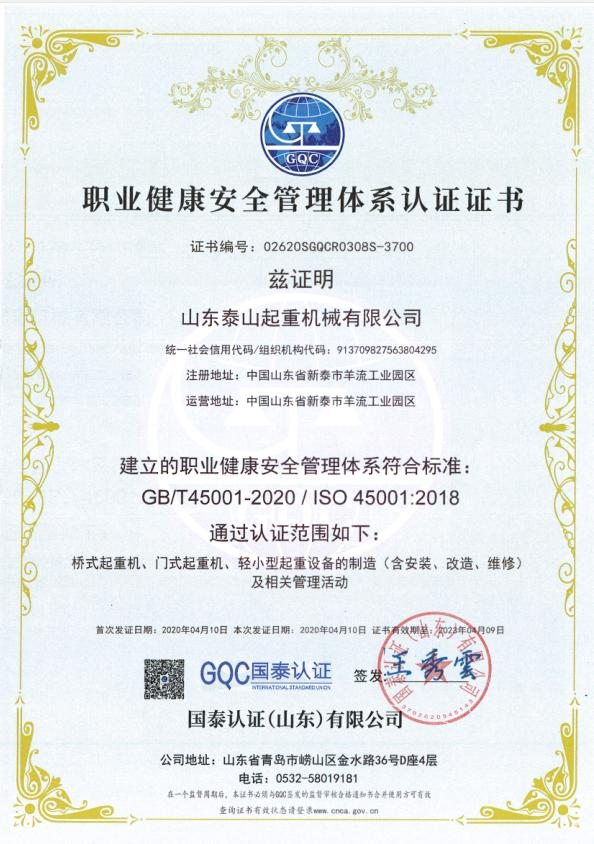| 發(fā)證機(jī)構(gòu): | 國(guó)泰認(rèn)證(山東)有限公司 | 發(fā)證時(shí)間 : | 2020-04-10 |