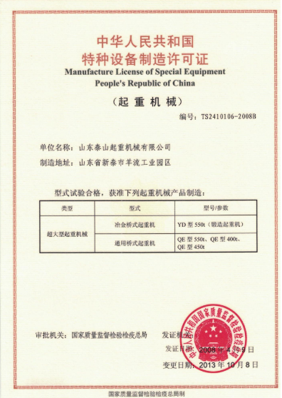 榮譽(yù)資質(zhì) 超大型起重機(jī)械