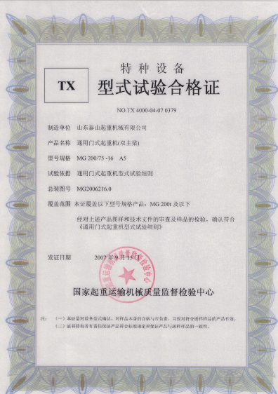 | 發(fā)證機(jī)構(gòu): | 國(guó)家起重運(yùn)輸機(jī)械質(zhì)量監(jiān)督檢驗(yàn)中心 | 發(fā)證時(shí)間 : | 2007-09-15 |