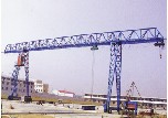 門式起重機是橋式起重機的一種變形,又叫龍門吊。主要用于室外的貨場、料場貨、散貨的裝卸作業(yè)。它的金屬結(jié)構(gòu)像門形框架,承載主梁下安裝兩條支腳,可以直接在地面的軌道上行走,主梁兩端可以具有外伸懸臂梁。門式起重機具有場地利用率高、作業(yè)范圍大、適應(yīng)面廣、通用性強等特點,在港口貨場得到廣泛使用。