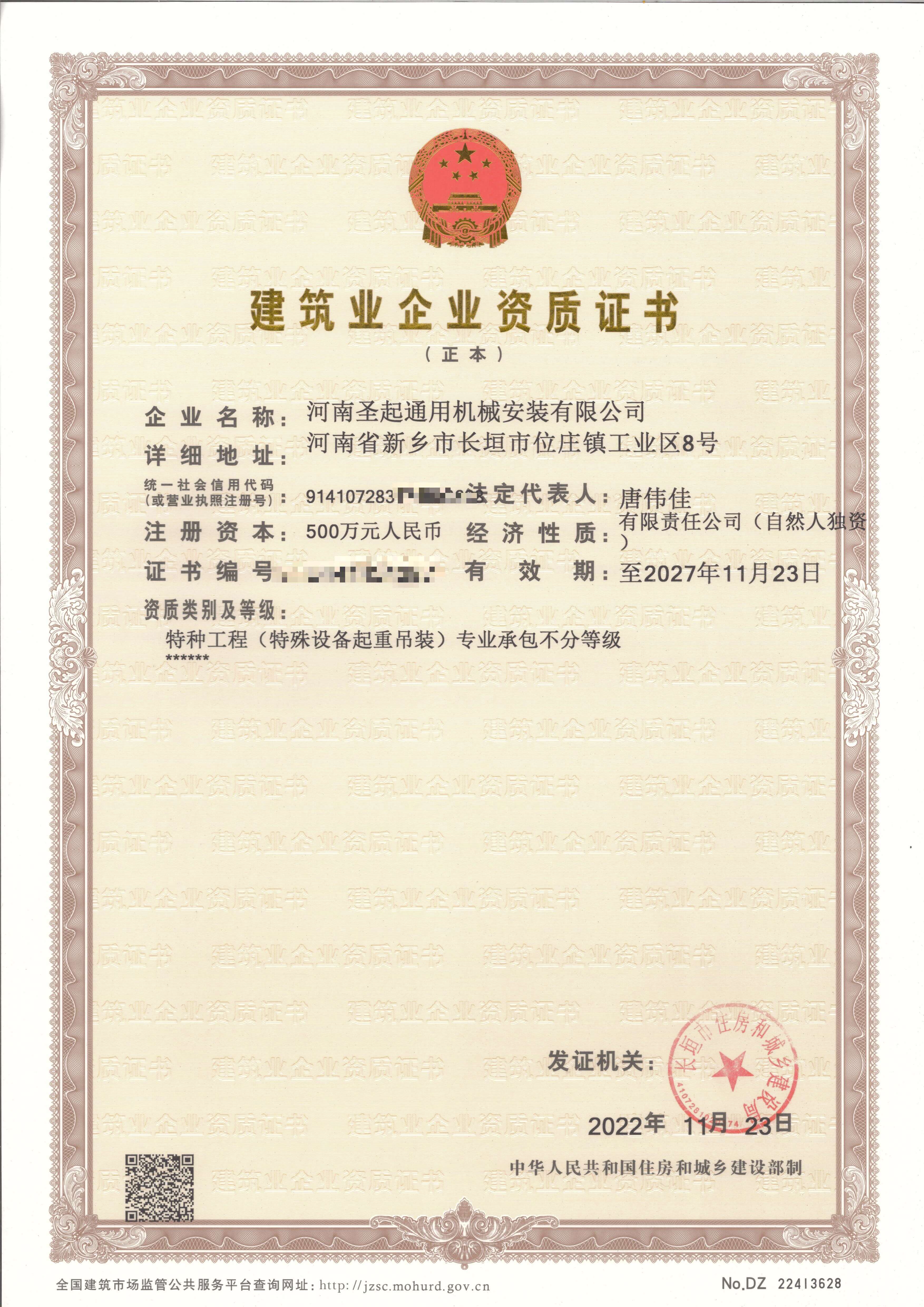 建筑業(yè)企業(yè)資質(zhì)證書