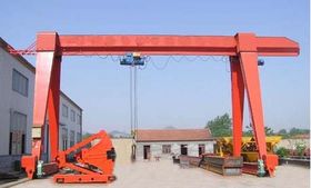 它的金屬結(jié)構(gòu)像門形框架,承載主梁下安裝兩條支腳,可以直接在地面的軌道上行走,主梁兩端可以具有外伸懸臂梁。