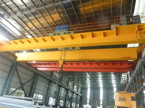 橋式起重機(jī)是橫架于車間、倉(cāng)庫(kù)和料場(chǎng)上空進(jìn)行物料吊運(yùn)的起重設(shè)備。由于它的兩端坐落在高大的水泥柱或者金屬支架上,形狀似橋。橋式起重機(jī)的橋架沿鋪設(shè)在兩側(cè)高架上的軌道縱向運(yùn)行,可以充分利用橋架下面的空間吊運(yùn)物料,不受地面設(shè)備的阻礙。它是使用范圍**廣、數(shù)量**多的一種起重機(jī)械。橋架在高架軌道上運(yùn)行的一種橋架型起重機(jī),又稱天車。橋式起重機(jī)的橋架沿鋪設(shè)在兩側(cè)高架上的軌道縱向運(yùn)行,起重小車沿鋪設(shè)在橋架上的軌道橫向運(yùn)行,構(gòu)成一矩形的工作范圍,**可以充分利用橋架下面的空間吊運(yùn)物料,不受地面設(shè)備的阻礙。這種起重機(jī)廣泛用在室內(nèi)外倉(cāng)庫(kù)、廠房、碼頭和露天貯料場(chǎng)等處。