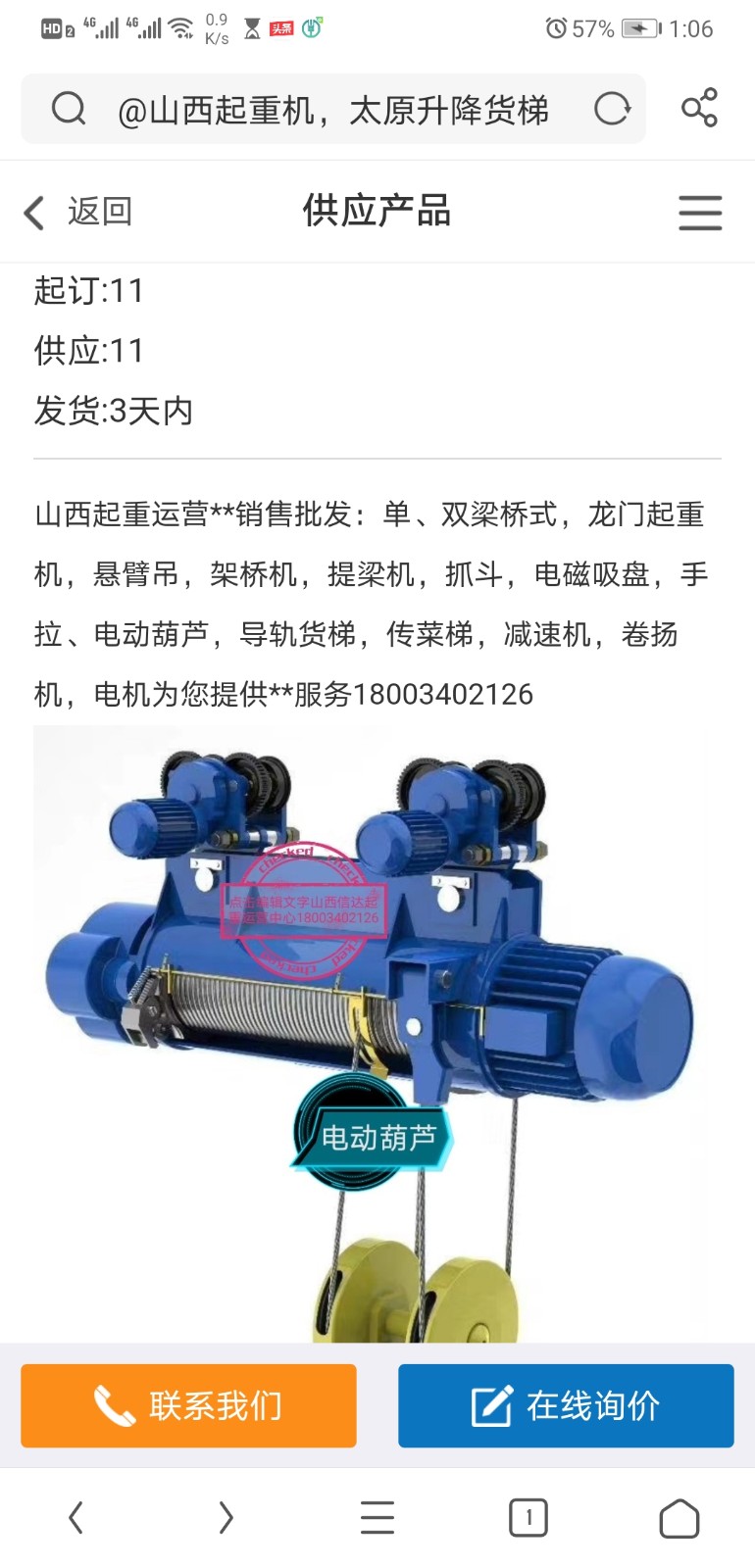 聯(lián)系我時(shí),請告知來自全球起重機(jī)械網(wǎng),將會給你95折優(yōu)惠,謝謝!