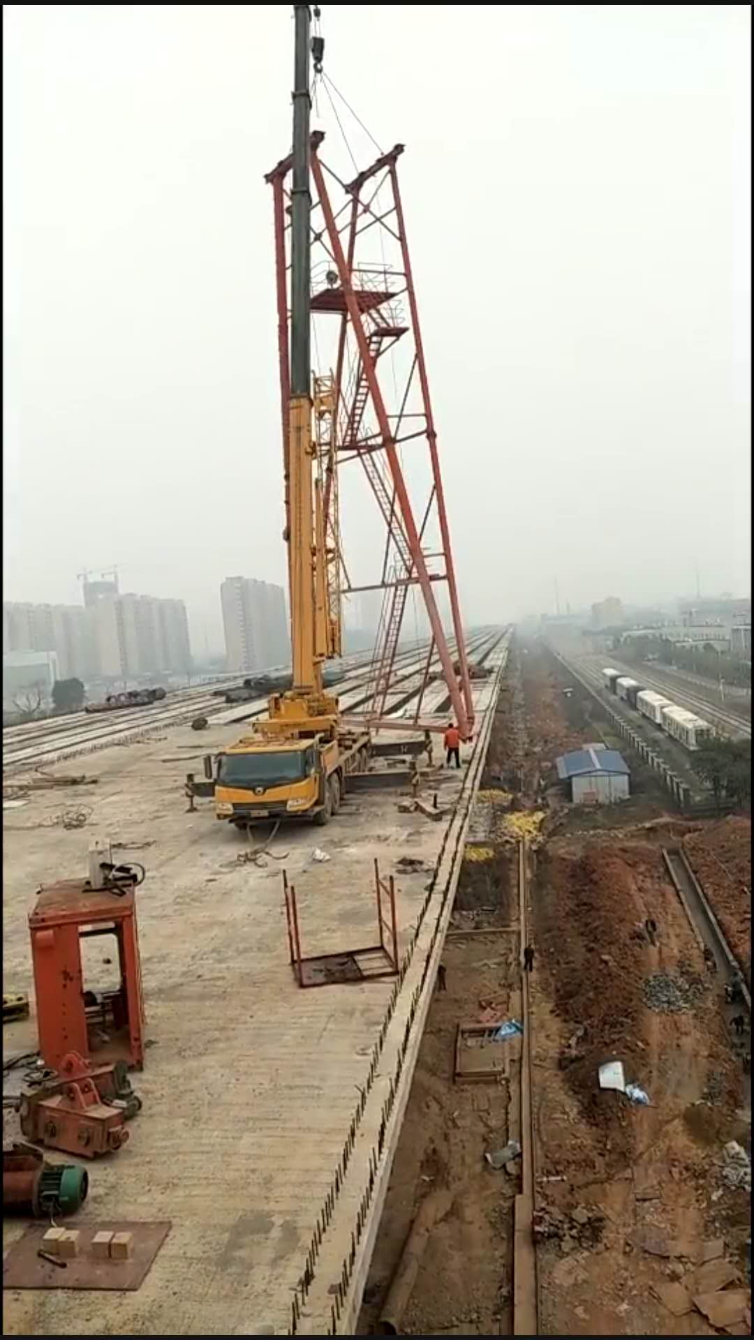 ![]() ![]() ![]() ![]() ![]() 80噸-42米起升高度24米提梁機(jī)2臺(tái) 60噸-42米起升高度24米提梁機(jī)2臺(tái) 正在有序拆除施工中,所配備專業(yè)施工人員16人,汽車吊100噸和70噸各1臺(tái) |