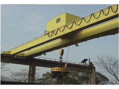 “橋式起重機(jī)是橫架于車間、倉庫和料場上空進(jìn)行物料吊運(yùn)的起重設(shè)備。由于它的兩端坐落在高大的水泥柱或者金屬支架上,形狀似橋。橋式起重機(jī)的橋架沿鋪設(shè)在兩側(cè)高架上的軌道縱向運(yùn)行,可以充分利用橋架下面的空間吊運(yùn)物料,不受地面設(shè)備的阻礙。它是使用范圍**廣、數(shù)量**多的一種起重機(jī)械。