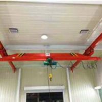 橋架在高架軌道上運行的一種橋架型起重機,又稱天車。橋式起重機的橋架沿鋪設(shè)在兩側(cè)高架上的軌道縱向運行,起重小車沿鋪設(shè)在橋架上的軌道橫向運行,構(gòu)成一矩形的工作范圍,就可以充分利用橋架下面的空間吊運物料,不受地面設(shè)備的阻礙。這種起重機廣泛用在室內(nèi)外倉庫、廠房、碼頭和露天貯料場等處。