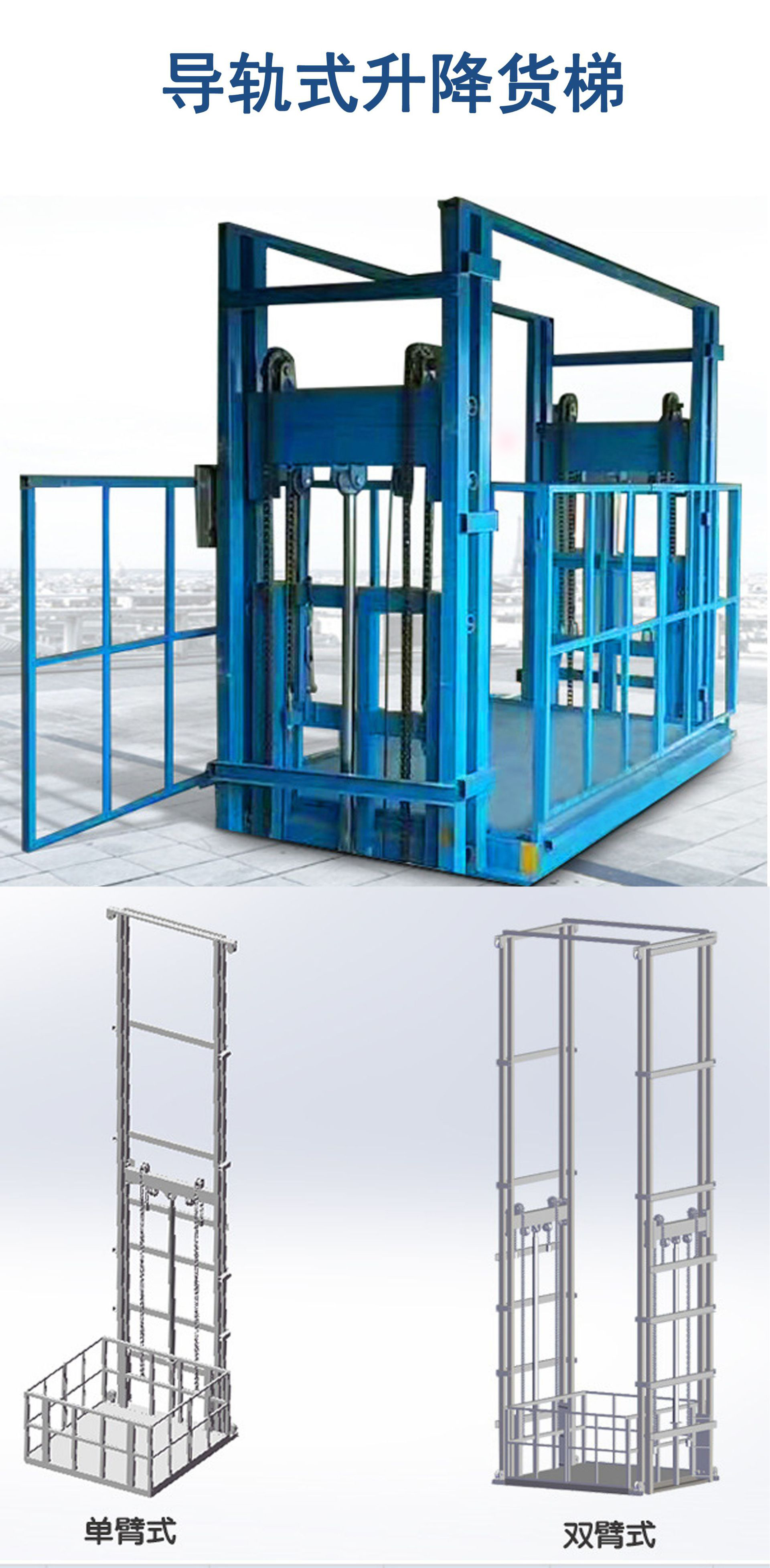 3、雙體室內(nèi)液壓貨梯不設(shè)置對重裝置, 提高井道面積利用率。