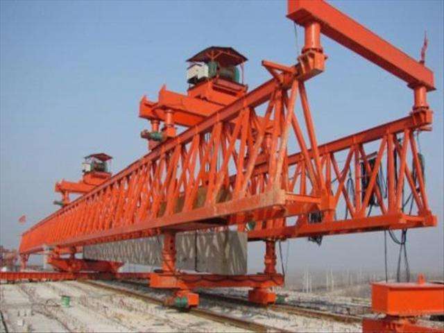 架橋機**是將預制好的梁片放置到預制好的橋墩上去的設備。架橋機屬于起重機范疇,因為其主要功能是將梁片提起,然后運送到位置后放下。但其與一般意義上的起重機有很大的不同。其要求的條件苛刻,并且存在梁片上走行,或者叫縱移。架橋機是一種運行工作范圍廣、性能優(yōu)良、操作方便、結(jié)構(gòu)安全的鋼結(jié)構(gòu)軌道式預制梁吊裝架設設備。
