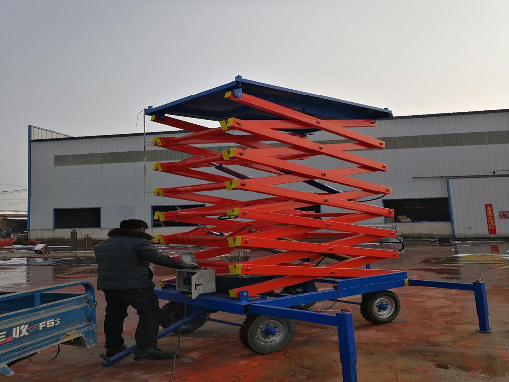 6、升降平臺(tái)也可配上手動(dòng)液壓裝置,可在停電或無電源場(chǎng)所照常升降工作,并可加伸縮平臺(tái),在平臺(tái)長(zhǎng)度不足時(shí)可延伸至所需位置,從而提高工作效率