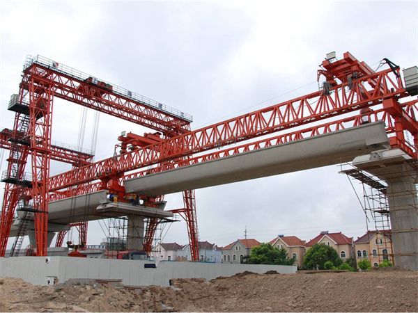 架橋機(jī)**是將預(yù)制好的梁片放置到預(yù)制好的橋墩上去的設(shè)備。架橋機(jī)屬于起重機(jī)范疇,因?yàn)槠渲饕δ苁菍⒘浩崞?,然后運(yùn)送到位置后放下。但其與一般意義上的起重機(jī)有很大的不同。其要求的條件苛刻,并且存在梁片上走行,或者叫縱移。架橋機(jī)是一種運(yùn)行工作范圍廣、性能優(yōu)良、操作方便、結(jié)構(gòu)安全的鋼結(jié)構(gòu)軌道式預(yù)制梁吊裝架設(shè)設(shè)備。