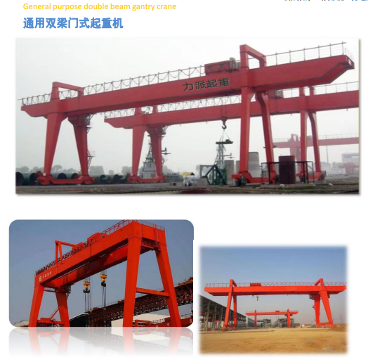 雙梁門式起重機(jī)型號(hào)有MG型雙梁門式起重機(jī)、MU型雙梁門式起重機(jī)兩種,根據(jù)產(chǎn)品外形可以分為U型雙梁龍門式起重機(jī)、A型雙梁門式起重機(jī)以及包箱雙梁門式起重機(jī)、花架雙梁門式起重機(jī)。本機(jī)適用于大跨度,裝卸作業(yè)頻繁的鐵路貨場(chǎng)、港口、露天倉庫、集裝箱中轉(zhuǎn)站進(jìn)行一般性貨物的裝卸及起重運(yùn)輸工作(同樣適用于車間內(nèi)安裝使用)。整機(jī)有雙主梁橋架、大車運(yùn)行結(jié)構(gòu)、小車、電氣設(shè)備等部分組成。