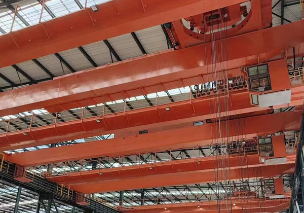 雙梁橋式起重機(jī)是一種常見(jiàn)的起重機(jī)械,被廣泛使用于各種場(chǎng)所,如港口、車間等。它主要由橋架、小車和金屬結(jié)構(gòu)等部分組成。橋架由兩根縱向平行主梁構(gòu)成空間結(jié)構(gòu),小車與主梁剛性連接,金屬結(jié)構(gòu)的柱間支撐用于懸掛小車,金屬結(jié)構(gòu)與主梁之間用螺栓連接,兩側(cè)的車架上安裝車輪,車輪上裝有制動(dòng)器或打滑器,主粱兩端裝有起重量限制器。根據(jù)需要,雙梁橋式起重機(jī)可以分為室內(nèi)和室外兩種類型,并具有閉式、開(kāi)式和保溫三種操作室。訂貨時(shí)需要根據(jù)實(shí)際工作環(huán)境,如**、**氣溫及電源種類等技術(shù)要求進(jìn)行選擇。
