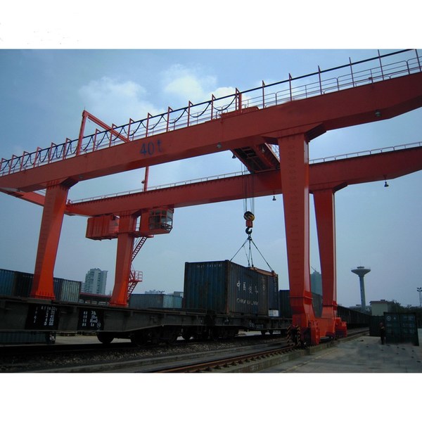 龍門吊是一種橋式起重機(jī),其金屬結(jié)構(gòu)像門形框架,承載主梁下安裝兩條支腳,可以直接在地面的軌道上行走,主梁兩端可以具有外伸懸臂梁。龍門吊具有場(chǎng)地利用率高、作業(yè)范圍大、適應(yīng)面廣、通用性強(qiáng)等特點(diǎn),在港口貨場(chǎng)得到廣泛使用。