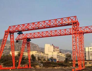 提梁機既可兩臺配合抬吊預(yù)制梁,也可以單臺起重機配雙吊具起吊預(yù)制梁。兩臺同時起重的提梁機各自的起重量一般為450噸,單臺起重的提梁機起重量通??蛇_900噸。它配置支腿行走、天車行走及天車起吊設(shè)備,可以實現(xiàn)全方位機械化動作。