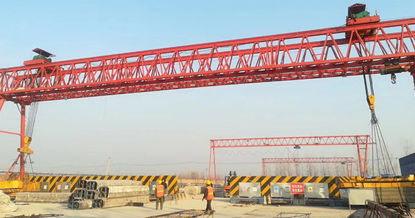 提梁機(jī)既可兩臺配合抬吊預(yù)制梁,也可以單臺起重機(jī)配雙吊具起吊預(yù)制梁。兩臺同時(shí)起重的提梁機(jī)各自的起重量一般為450噸,單臺起重的提梁機(jī)起重量通常可達(dá)900噸。它配置支腿行走、天車行走及天車起吊設(shè)備,可以實(shí)現(xiàn)全方位機(jī)械化動作。