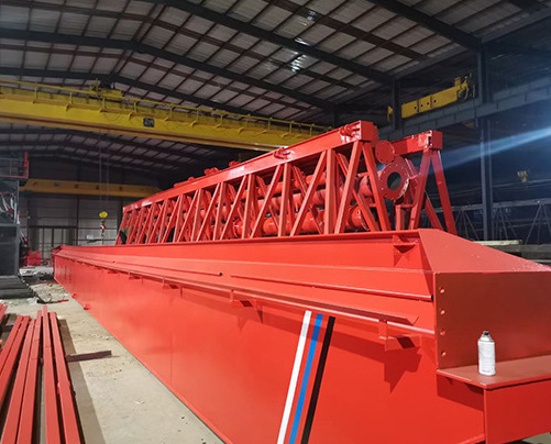 架橋機(jī)的工作原理是,通過(guò)起吊天車將預(yù)制好的橋梁構(gòu)件吊裝到指定位置,然后利用橫移機(jī)構(gòu)和縱移機(jī)構(gòu)將架橋機(jī)移動(dòng)到下一個(gè)工作位置,繼續(xù)進(jìn)行吊裝和拼裝作業(yè)。在橋梁施工過(guò)程中,架橋機(jī)還需要進(jìn)行各種支撐和固定工作,以確保橋梁的穩(wěn)定性和安全性。