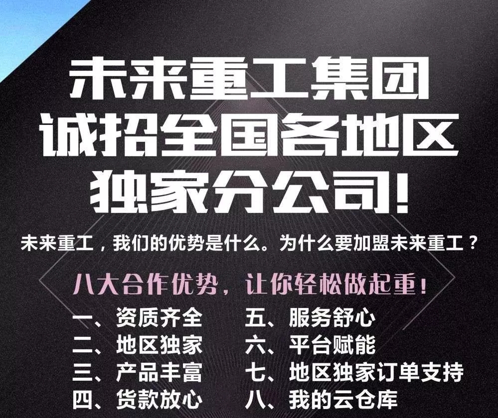 未來(lái)重工集團(tuán)在全國(guó)各地區(qū)招募獨(dú)家分公司,咨詢熱線:400-0373-163