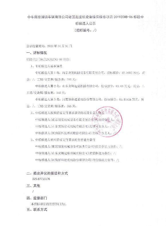 移動(dòng)版:中車南京浦鎮(zhèn)車輛有限公司老區(qū)起重機(jī)設(shè)備維保維修項(xiàng)目2019ZCWB-06標(biāo)段中標(biāo)候選人公示