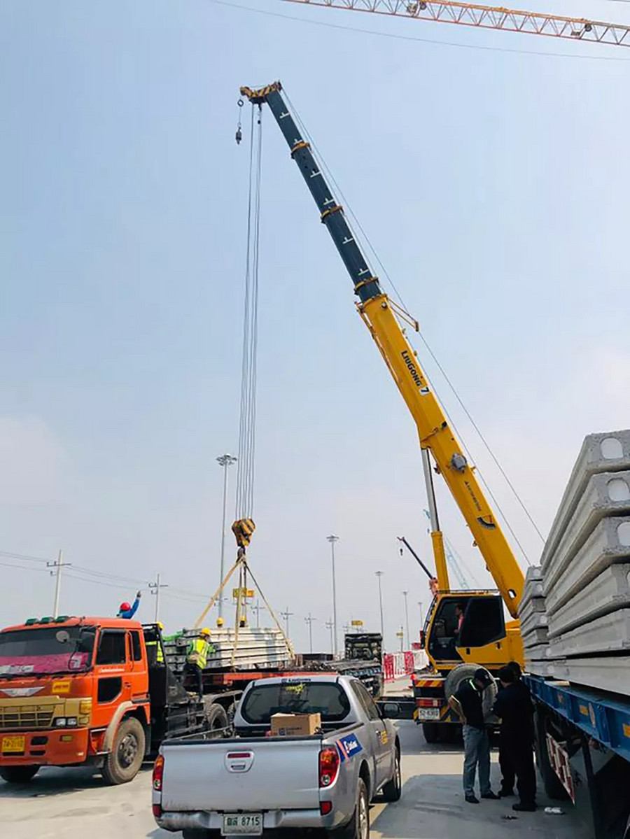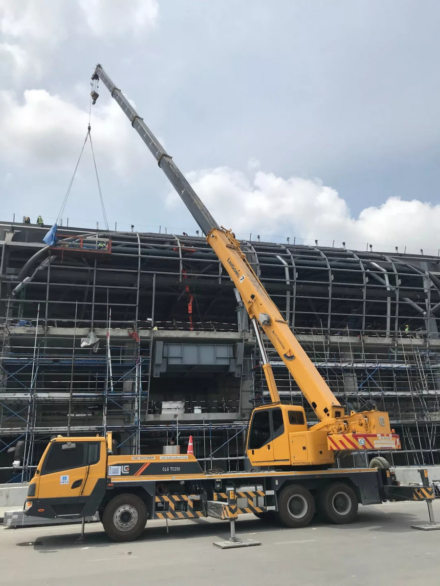 中國(guó)建筑集團(tuán)有限公司作為中國(guó)建設(shè)企業(yè)的代表,對(duì)施工設(shè)備的要求極為嚴(yán)格,其多年來,一直與柳工保持著良好的合作關(guān)系,在多項(xiàng)大型工程中強(qiáng)強(qiáng)聯(lián)合。2016年,柳工TC250A4汽車起重機(jī)從眾多設(shè)備中脫穎而出,成功跟隨中國(guó)建筑投入到素萬那普機(jī)場(chǎng)2期工程——機(jī)場(chǎng)T2航站樓的建設(shè)中來,主要承擔(dān)吊裝預(yù)制板和候機(jī)樓地板鋪設(shè)工作。在高強(qiáng)度,高負(fù)荷的運(yùn)轉(zhuǎn)下,柳工起重機(jī)憑借卓越的性能,超高的施工效率,零故障得到客戶的高度贊揚(yáng),始終是該項(xiàng)目施工的吊裝主力。