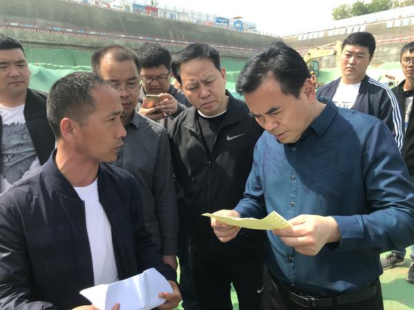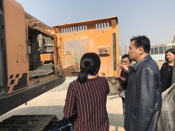 在建業(yè)中心項目工地,馮保河仔細詢問了車輛的油品使用情況,查看機械的加油臺賬。