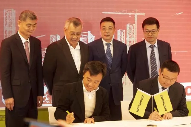 ▲中聯(lián)重科與新加坡長(zhǎng)運(yùn)簽約現(xiàn)場(chǎng)