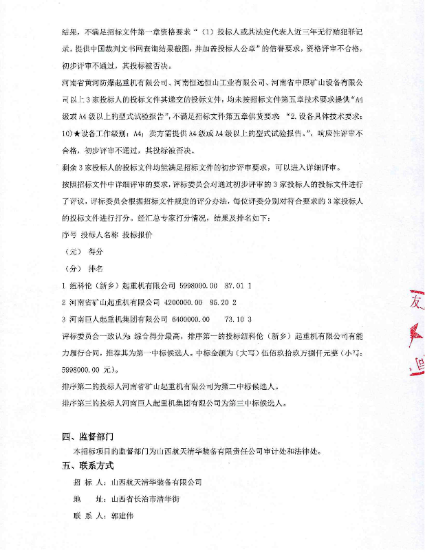 移動版:防爆雙梁吊鉤橋式起重機(jī)采購項目中標(biāo)候選人公示