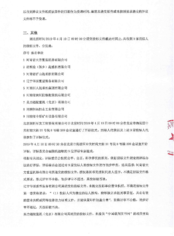 防爆雙梁吊鉤橋式起重機(jī)采購項目中標(biāo)候選人公示