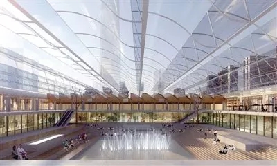 同時(shí)地面規(guī)劃則是綠軸廣場,東西長2公里,南北寬60米。建筑群以這條綠軸為界分布,這里將會(huì)形成一條縱向的“城市綠軸”畫卷。