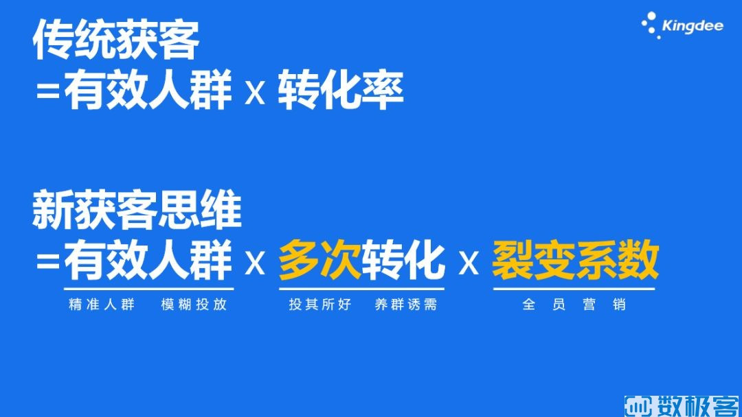 這個公式有三個因素:有效人群、多次轉(zhuǎn)化、裂變系數(shù)。
