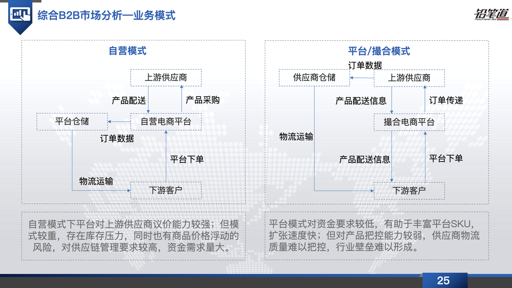 B2B電商在過去幾年平臺交易數(shù)據(jù)的積累中,逐步拓展出更具商業(yè)價(jià)值的業(yè)務(wù)模式,傳統(tǒng)的信息服務(wù)模式并不能滿足B端商戶愈加多元化的服務(wù)需求,以數(shù)據(jù)賦能小B端商戶更能增強(qiáng)客戶粘性,提升復(fù)購率;完善供應(yīng)鏈上各個(gè)環(huán)節(jié)上的增值服務(wù),拓展盈利模式,形成更高的行業(yè)壁壘。