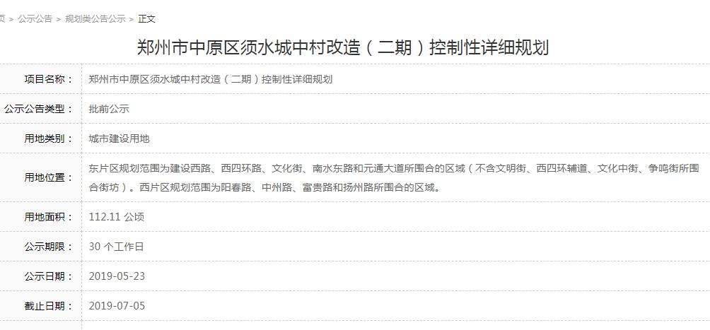 移動版:用地面積1681.65畝!鄭州須水城中村改造方案來了