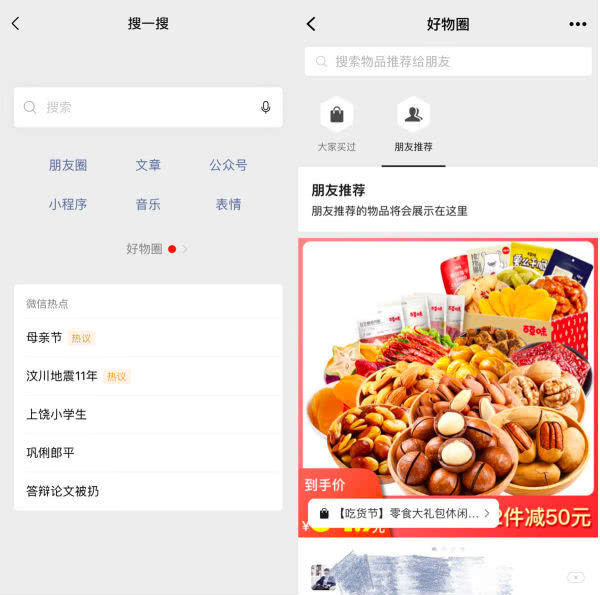 在產(chǎn)品邏輯上,“好物圈”和之前主推的“看一看”幾乎相同,后者主打通過(guò)社交關(guān)系分發(fā)微信公眾號(hào)的內(nèi)容。