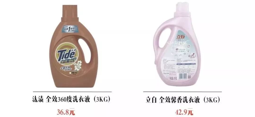 首先是洗衣粉,作為全世界第一代洗衣粉生產(chǎn)商、寶潔旗下品牌,汰漬賣36.8元,而作為國產(chǎn)品牌的立白賣42.9元,并于2017年就在銷量上超過了汰漬。